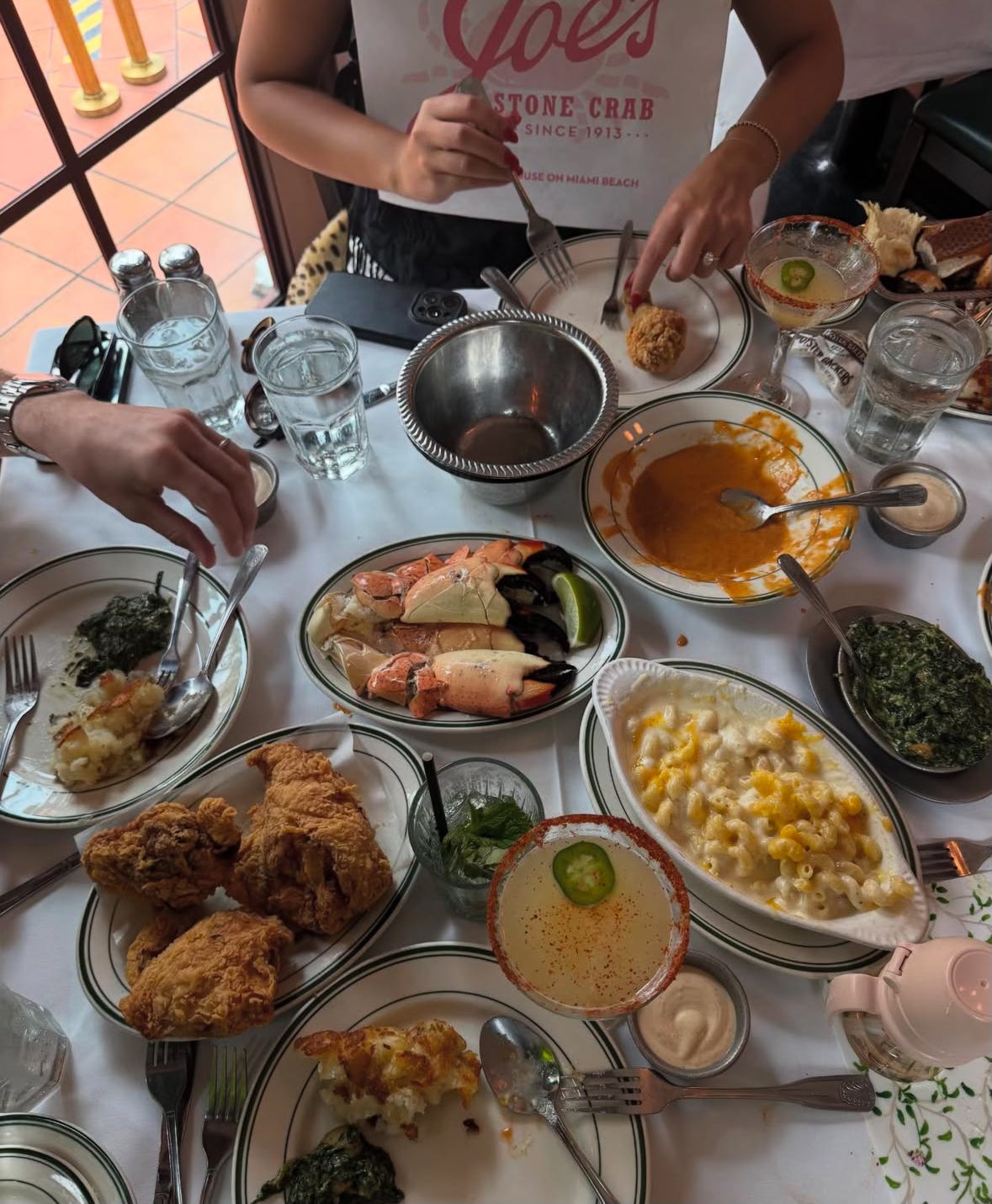 Joe’s Stone Crab - the $8 side of fried chicken is the biggest steal and low-key secret of Miami. Obviously the stone crabs, spicy margs, and key lime pie are great, too. They also take reservations now two weeks in advance!